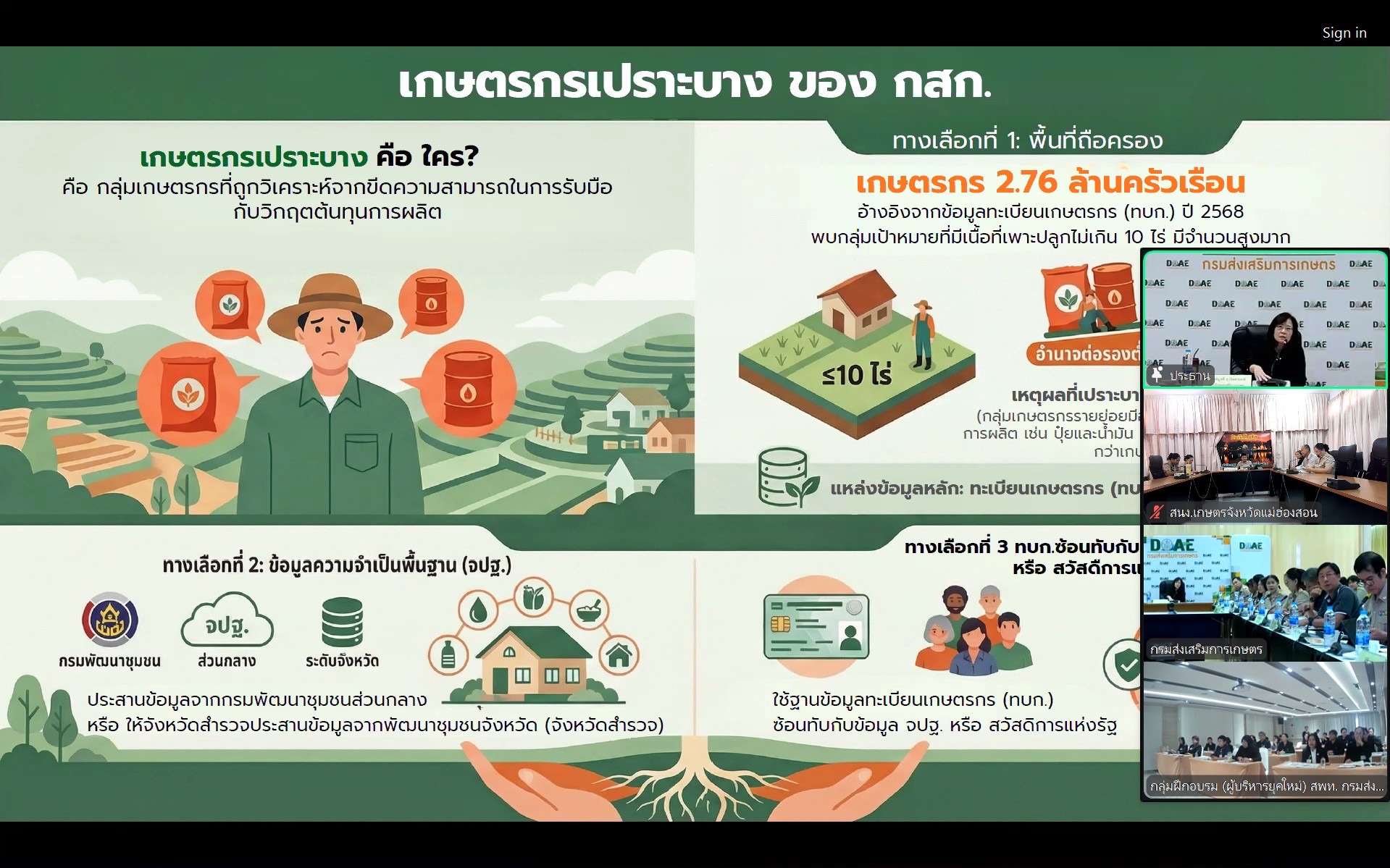การดำเนินงานโครงการตามแผนปฏิบัติราชการให้สอดคล้องกับสถานการณ์ปัจจุบัน แนวทางรองรับผลกระทบจากวิกฤตพลังงานอันเนื่องมาจากสถานการณ์การสู้รบในภาคตะวันออกกลาง รวมถึง ประเด็น Challenge ของกรมส่งเสริมการเกษตร ประจำปีงบประมาณ พ.ศ. 2569 เพื่อขับเคลื่อนภารกิจด้านการส่งเสริมการเกษตรอย่างมีประสิทธิภาพ