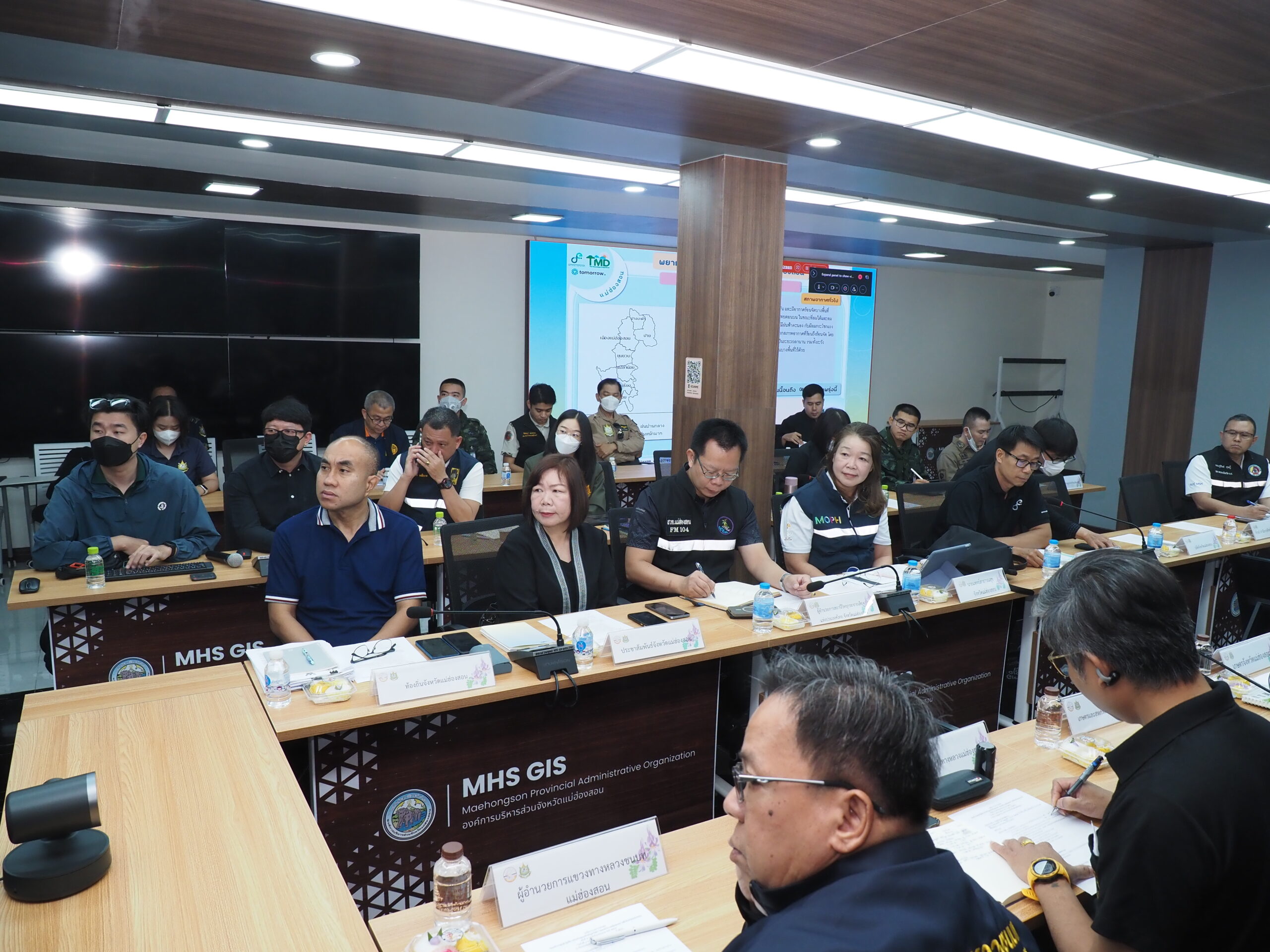 วันที่ 1 เมษายน 2569 เวลา 08.00 น. นายพยุงศักดิ์ สิทธิลภ เกษตรจังหวัดแม่ฮ่องสอน พร้อมด้วย นางสาวณิชาภัทร สิทธิวรนนท์ นักวิชาการส่งเสริมการเกษตรปฏิบัติการ เข้าร่วมการประชุมคณะทำงานศูนย์ปฏิบัติการป้องกันและแก้ไขปัญหาไฟป่า หมอกควัน และฝุ่นละออง ระดับจังหวัดแม่ฮ่องสอน (ศูนย์ War Room จังหวัด) ครั้งที่ 5 ประจำปีงบประมาณ พ.ศ. 2569 โดยมี นายวิบูรณ์ แววบัณฑิต ผู้ว่าราชการจังหวัดแม่ฮ่องสอน เป็นประธานการประชุม เพื่อร่วมติดตามสถานการณ์ไฟป่า หมอกควัน และฝุ่นละอองในพื้นที่จังหวัดแม่ฮ่องสอน ซึ่งที่ประชุมได้รายงานสถานการณ์สภาพอากาศและคุณภาพอากาศ สรุปสถิติจุดความร้อนและพื้นที่เผาไหม้ของจังหวัดแม่ฮ่องสอน ห้วงวันที่ 1 มกราคม – 31 มีนาคม 2569 สถานการณ์ไฟป่าในพื้นที่ป่าอนุรักษ์และป่าสงวนแห่งชาติ การชี้เป้าพื้นที่เสี่ยงต่อการเกิดไฟป่า หมอกควัน และฝุ่นละออง ตลอดจนการดูแลสุขภาพประชาชนและการดำเนินงานด้านสาธารณสุข ทั้งนี้ ประธานการประชุมได้มีข้อสั่งการให้หน่วยงานที่เกี่ยวข้องติดตามสภาพอากาศและแนวโน้มการระบายอากาศของพื้นที่อย่างใกล้ชิดก่อนการอนุญาตบริหารจัดการเชื้อเพลิงในระบบ Fire D ควบคู่กับการติดตามสถานการณ์คุณภาพอากาศรายวัน เพื่อเตรียมความพร้อมในการประกาศเขตให้ความช่วยเหลือในพื้นที่ต่าง ๆ พร้อมกำชับให้อำเภอประสานผู้นำท้องที่และองค์กรปกครองส่วนท้องถิ่นสร้างการรับรู้แก่ประชาชนงดเข้าพื้นที่ป่าอนุรักษ์และงดเผาในที่โล่งแจ้งตามประกาศห้ามเผา โดยผู้ฝ่าฝืนจะมีความผิดตามกฎหมาย และให้บูรณาการการทำงานของทุกหน่วยงานในการตรวจตรา เฝ้าระวัง และประสานการปฏิบัติงาน เพื่อเพิ่มประสิทธิภาพในการแก้ไขปัญหาไฟป่า หมอกควัน และฝุ่นละอองอย่างยั่งยืนต่อไป ณ ศูนย์เทคโนโลยีสารสนเทศภูมิศาสตร์ (GIS) องค์การบริหารส่วนจังหวัดแม่ฮ่องสอน