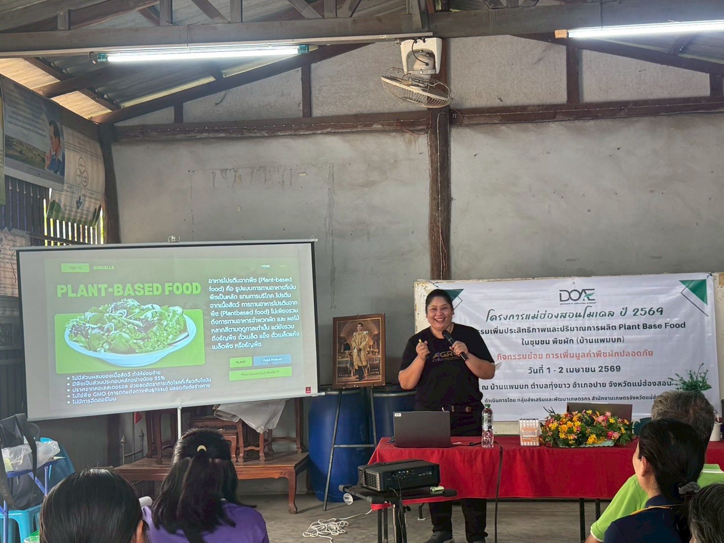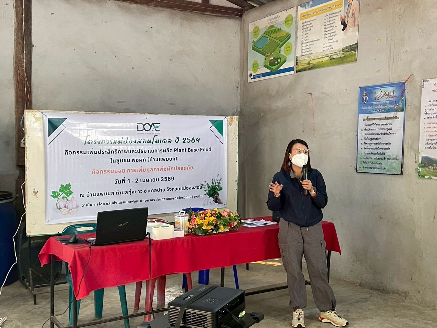 วันที่ 1 – 2 เมษายน 2569 นายพยุงศักดิ์ สิทธิลภ เกษตรจังหวัดแม่ฮ่องสอน มอบหมายให้เจ้าหน้าที่กลุ่มส่งเสริมและพัฒนาเกษตรกร ดำเนินการโครงการแม่ฮ่องสอนโมเดล ประจำปีงบประมาณ พ.ศ. 2556 กิจกรรมหลักเพิ่มประสิทธิภาพและปริมาณการผลิต Plant Base Food ในชุมชน กิจกรรมย่อยจัดเวทีวิเคราะห์การเพิ่มมูลค่าผลผลิตผักด้วยการแปรรูป การบริหารจัดการธุรกิจ พร้อมการวิเคราะห์ด้านการตลาด และอบรมให้ความรู้การเพิ่มมูลค่าผลผลิตผัก Plant base food โดยมี นายวัฒนะ พุ่มริ้ว พนักงานพัฒนาลูกค้า 9 ธกส.จังหวัดแม่ฮ่องสอน และเจ้าหน้าที่จากศูนย์วิจัยและพัฒนาผลิตภัณฑ์และบรรจุภัณฑ์ มหาวิทยาลัยเชียงใหม่ ร่วมเป็นวิทยากร ให้แก่กลุ่มปลูกผัก บ้านแพมบก ณ ศาลาอเนกประสงค์บ้านแพมบก ตำบลทุ่งยาว อำเภอปาย จังหวัดแม่ฮ่องสอน