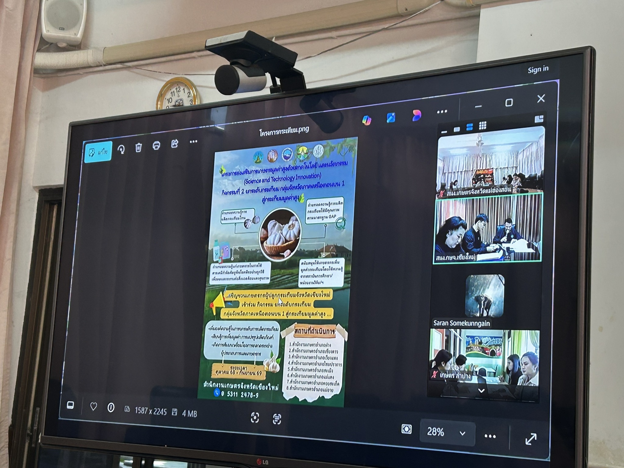 วันที่ 5 มกราคม 2569 เวลา 09.00 น. นายพยุงศักดิ์ สิทธิลภ เกษตรจังหวัดแม่ฮ่องสอน พร้อมด้วยเจ้าหน้าที่สำนักงานเกษตรจังหวัดแม่ฮ่องสอน เข้าร่วมประชุมชี้แจงโครงการยกระดับกระเทียมมูลค่าสูง กลุ่มจังหวัดภาคเหนือตอนบน 1 ปีงบประมาณ 2569 ผ่านระบบ Zoom Meeting โดยมีผู้เข้าร่วมประชุมประกอบด้วยสำนักงานเกษตรจังหวัดเชียงใหม่ ลำปาง ลำพูน และผู้แทนกลุ่มเกษตรกร เพื่อชี้แจงรายละเอียดและแนวทางการดำเนินงานโครงการส่งเสริมการเกษตรมูลค่าสูงด้วยวิทยาศาสตร์ เทคโนโลยี และนวัตกรรม (Science Technology and Innovation) กิจกรรมหลักที่ 2 การยกระดับกระเทียม กลุ่มจังหวัดภาคเหนือตอนบน 1 สู่กระเทียมมูลค่าสูง ซึ่งมีความจำเป็นต่อการพัฒนาศักยภาพการผลิตกระเทียมให้มีคุณภาพ โดยมุ่งเน้นการเพิ่มองค์ความรู้ด้านเทคโนโลยีและนวัตกรรมการผลิต การเพิ่มมูลค่าผลผลิตและการแปรรูป การขยายช่องทางการตลาดและการประชาสัมพันธ์ เพื่อเสริมสร้างขีดความสามารถในการแข่งขัน ส่งผลให้เกษตรกรผู้ปลูกกระเทียมในกลุ่มจังหวัดภาคเหนือตอนบน 1 มีรายได้เพิ่มขึ้นและมีคุณภาพชีวิตที่ดีขึ้นอย่างยั่งยืน ทั้งนี้ โครงการมีวัตถุประสงค์เพื่อส่งเสริมให้เกษตรกรมีองค์ความรู้ในการยกระดับการผลิตกระเทียมให้มีประสิทธิภาพ มีคุณภาพ และได้รับการรับรองมาตรฐาน GAP รวมถึงการเรียนรู้ด้านการเพิ่มมูลค่าและการแปรรูปผลิตภัณฑ์กระเทียม โดยมีกลุ่มเป้าหมายเป็นเกษตรกรผู้ปลูกกระเทียมในกลุ่มจังหวัดภาคเหนือตอนบน 1 จำนวน 4 จังหวัด ได้แก่ จังหวัดเชียงใหม่ 10 กลุ่ม 200 ราย จังหวัดแม่ฮ่องสอน 7 กลุ่ม 100 ราย จังหวัดลำพูน 3 กลุ่ม 100 ราย และจังหวัดลำปาง 1 กลุ่ม 30 ราย ณ ห้องประชุมสำนักงานเกษตรจังหวัดแม่ฮ่องสอน