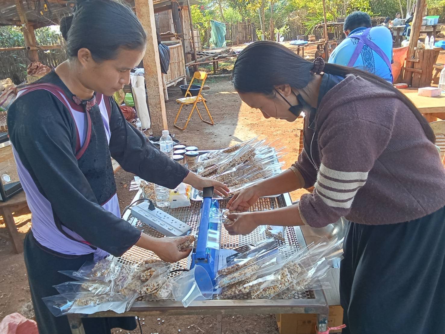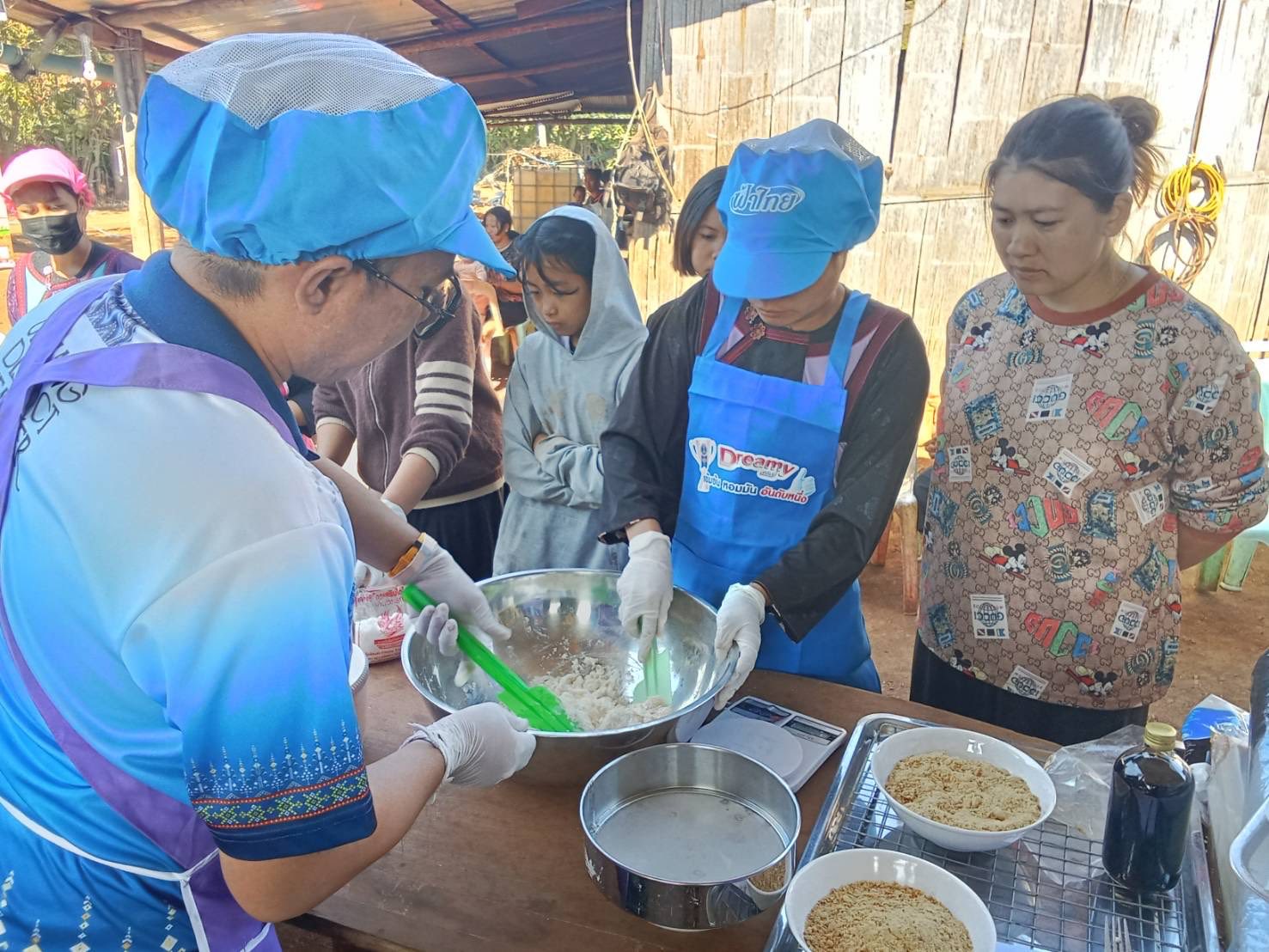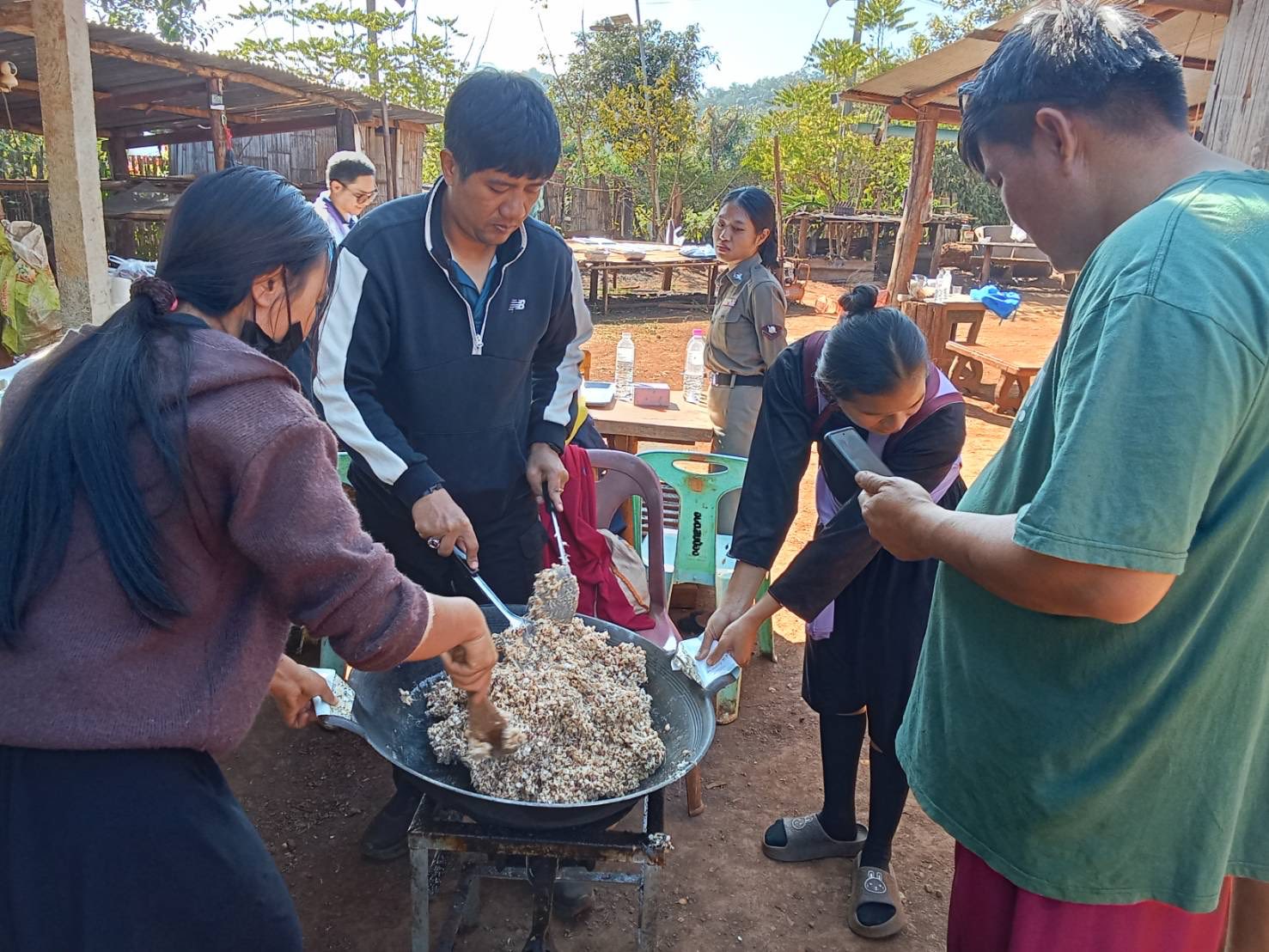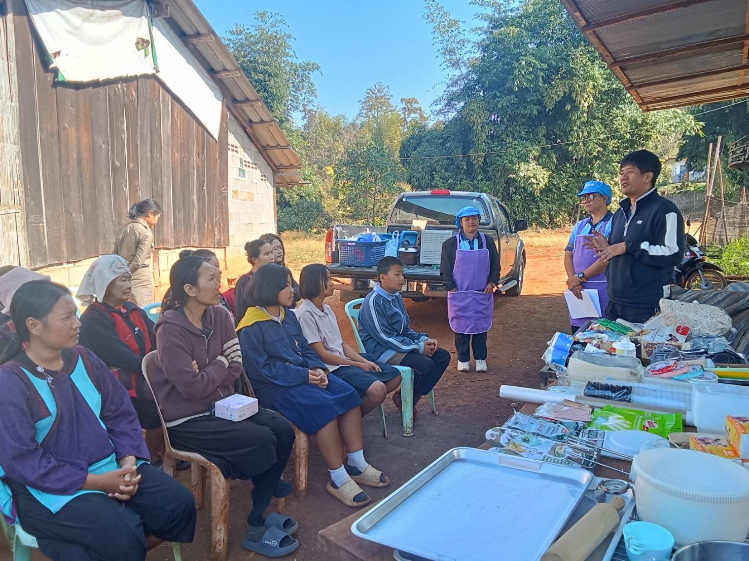 วันที่ 12 มกราคม 2569 นายพยุงศักดิ์ สิทธิลภ เกษตรจังหวัดแม่ฮ่องสอน มอบหมายให้ นางสาวพัชรินทร์ พานทอง นักวิชาการส่งเสริมการเกษตรชำนาญการ กลุ่มส่งเสริมและพัฒนาการผลิต พร้อมด้วยเจ้าหน้าที่สำนักงานเกษตรอำเภอปางมะผ้า ดำเนินการโครงการแม่ฮ่องสอนโมเดลพัฒนาเศรษฐกิจสู่ความยั่งยืน ปี 2569 – 2570 (ด้านพืช) กิจกรรมยกระดับการผลิตและเพิ่มมูลค่าถั่วลิสงลายเสือ (งบพัฒนาจังหวัด)โดยถ่ายทอดความรู้ให้แก่เกษตรกรผู้ปลูกถั่วลิสงลายเสือบ้านน้ำบ่อสะเป่ ตำบลสบป่อง อำเภอปางมะผ้า ในหลักสูตร “การจัดการฟาร์ม” วิทยากรจากสถานีพัฒนาที่ดินแม่ฮ่องสอน และฝึกปฏิบัติการแปรรูปถั่วลิสงลายเสือ”กระยาสารท และคุ๊กกี๊ถั่วลายเสือ” วิทยากรโดยครูคหกรรม โรงเรียนบ้านห้วยผา และโรงเรียนบ้านป่าลาน ณ บ้านน้ำบ่อสะเป่ ตำบลสบป่อง อำเภอปางมะผ้า จังหวัดแม่ฮ่องสอน