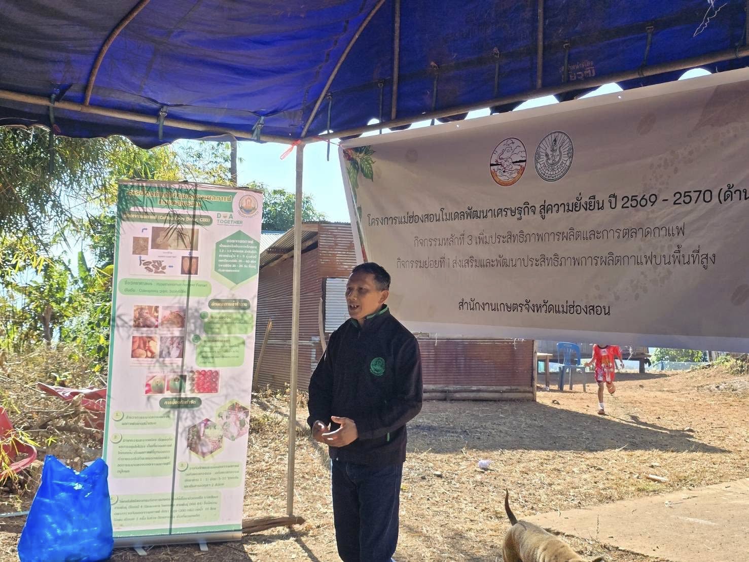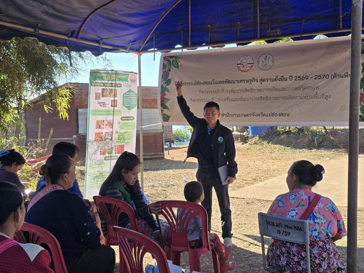 กลุ่มส่งเสริมและพัฒนาการผลิต พร้อมด้วยเจ้าหน้าที่สำนักงานเกษตรอำเภอปายดำเนินการโครงการแม่ฮ่องสอนโมเดลพัฒนาเศรษฐกิจสู่ความยั่งยืน ปี 2569 – 2570 (ด้านพืช) กิจกรรมส่งเสริมและพัฒนาประสิทธิภาพการผลิตและตลาดกาแฟ (งบพัฒนาจังหวัด)โดยถ่ายทอดความรู้ให้แก่เกษตรกร ในหลักสูตรส่งเสริมและพัฒนาประสิทธิภาพการผลิตกาแฟบนพื้นที่สูง โดยมีวิทยากรจากศูนย์วิจัยและพัฒนาการเกษตรแม่ฮ่องสอน และสพวส. ร่วมเป็นเป็นวิทยากร