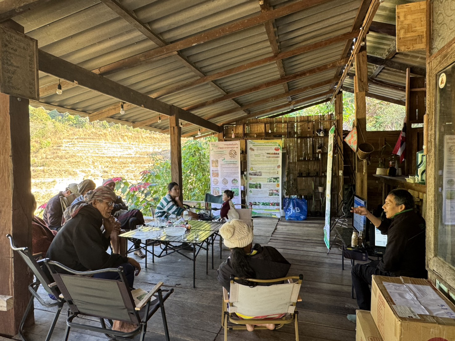 วันที่ 27 มกราคม 2568 เวลา 09.00 น. นายพยุงศักดิ์ สิทธิลภ เกษตรจังหวัดแม่ฮ่องสอน มอบหมายให้เจ้าหน้าที่กลุ่มส่งเสริมและพัฒนาเกษตรกร ร่วมกับเจ้าหน้าที่สำนักงานเกษตรอำเภอแม่สะเรียง จัดอบรมการจัดการและดูแลรักษาแปลงกาแฟภายใต้สภาวะการเปลี่ยนแปลงของสภาพภูมิอากาศ ภายใต้โครงการส่งเสริมและพัฒนาเพื่อเข้าสู่ห่วงโซ่อุปทานและบริการมูลค่าสูง ให้แก่สมาชิกวิสาหกิจชุมชนโฮมเสตย์ฮากไม้ใต้ จำนวน 7 ราย