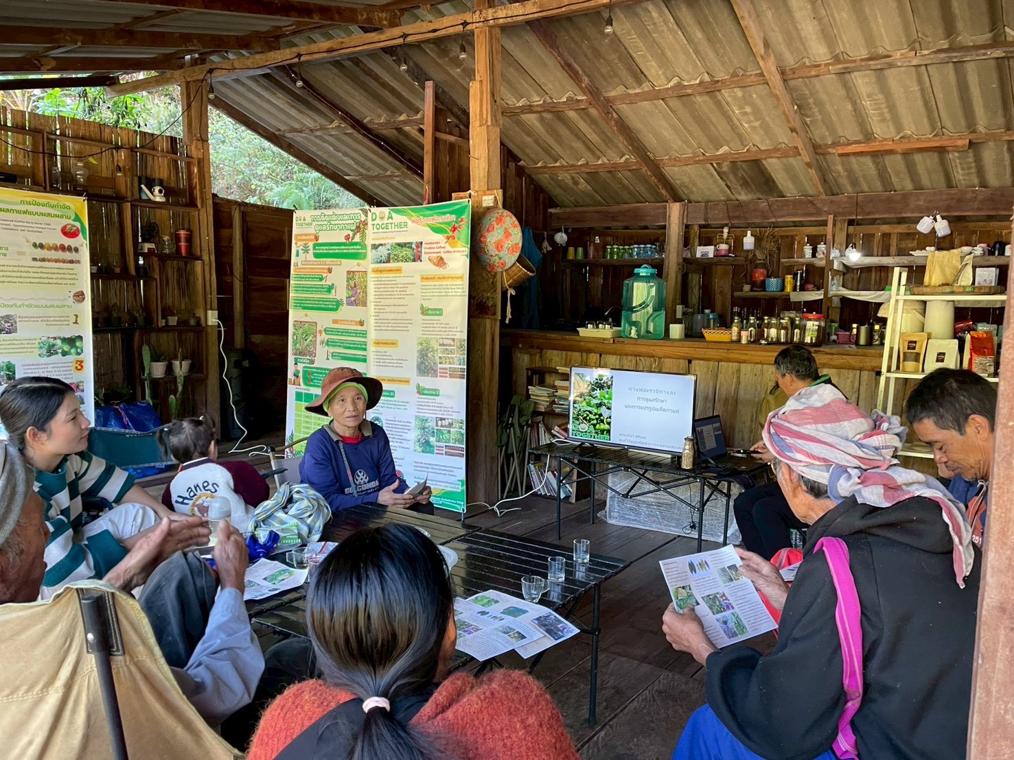 วิทยากรโดย นายสุริยา ศรีแสง เจ้าหน้าที่ศูนย์วิจัยและพัฒนาการเกษตรจังหวัดแม่ฮ่องสอน การจัดอบรมในครั้งนี้มีวัตถุประสงค์เพื่อเพิ่มทักษะในการจัดการและดูแลแปลงกาแฟ และเพิ่มปริมาณผลผลิตกาแฟ