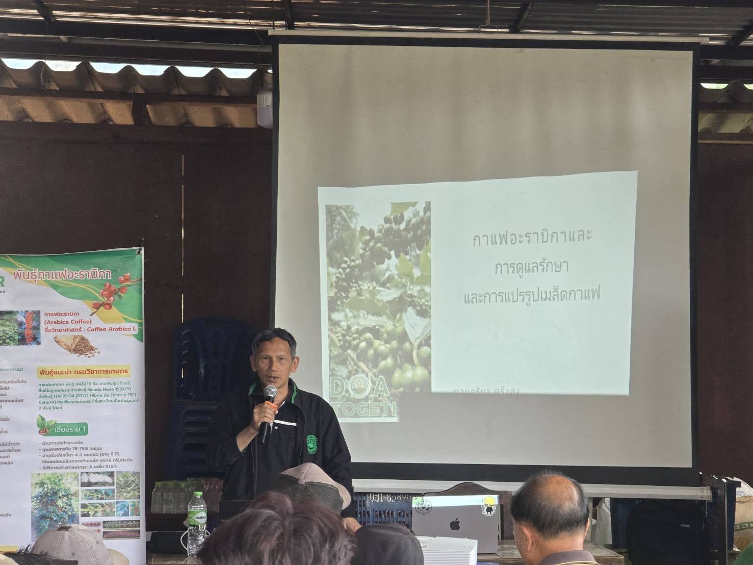 วันที่ 2 กุมภาพัธ์ 2569 นายพยุงศักดิ์ สิทธิลภ เกษตรจังหวัดแม่ฮ่องสอน มอบหมายให้นางสาวอรพิณ พะเก่พอ นักวิชาการส่งเสริมการเกษตรปฏิบัติการ และเจ้าหน้าที่สำนักงานเกษตรอำเภอขุนยวม ดำเนินการโครงการแม่ฮ่องสอนโมเดลพัฒนาเศรษฐกิจสู่ความยั่งยืน ปี 2569 – 2570 (ด้านพืช) กิจกรรมส่งเสริมและพัฒนาประสิทธิภาพการผลิตและตลาดกาแฟ (งบพัฒนาจังหวัด)โดยถ่ายทอดความรู้ให้แก่เกษตรกรผู้ปลูกกาแฟ ในหลักสูตรส่งเสริมและพัฒนาประสิทธิภาพการผลิตกาแฟบนพื้นที่สูง โดยมีวิทยากรจากศูนย์วิจัยและพัฒนาการเกษตรแม่ฮ่องสอน และสถาบันวิจัยและพัฒนาพื้นที่สูง ร่วมเป็นเป็นวิทยากรในการถ่ายทอดความรู้ ณ บ้านปางตอง ตำบลแม่อูคอ อำเภอขุนยวม จังหวัดแม่ฮ่องสอน