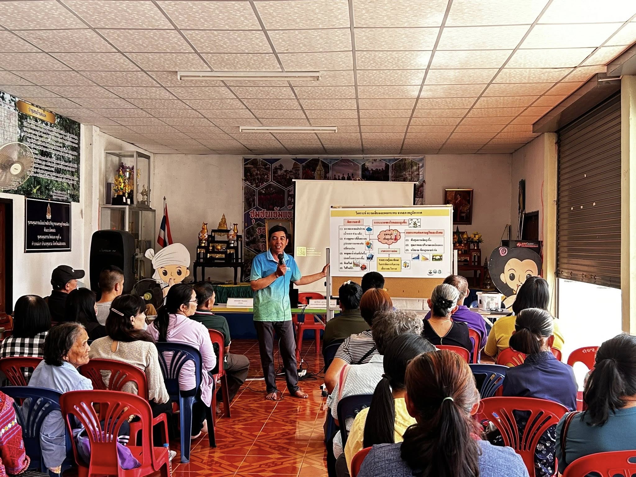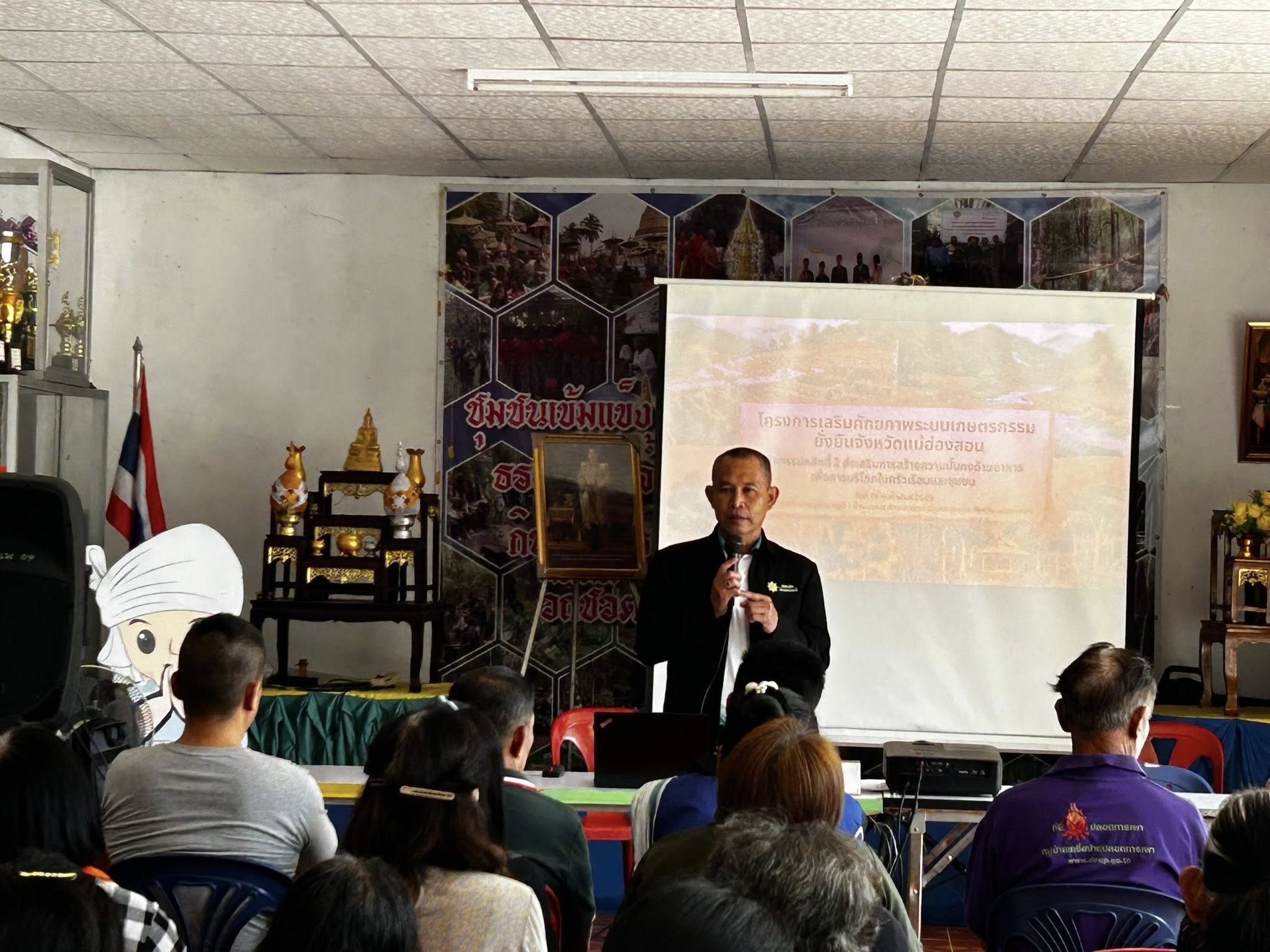 วันที่ 19 กุมภาพันธ์ 2569 นายพยุงศักดิ์ สิทธิลภ เกษตรจังหวัดแม่ฮ่องสอน มอบหมายให้นายศราวุธ ชนะชัย หัวหน้ากลุ่มยุทธศาสตร์และสารสนเทศ พร้อมด้วยเจ้าหน้าที่กลุ่มยุทธศาสตร์และสารสนเทศ ดำเนินการจัดอบรมโครงการเสริมศักยภาพระบบเกษตรกรรมยั่งยืนจังหวัดแม่ฮ่องสอน กิจกรรมหลักที่ 2 ส่งเสริมการสร้างความมั่นคงด้านอาหาร เพื่อการบริโภคในครัวเรือนและชุมชน ให้แก่เกษตรกรและประชาชนในพื้นที่ จำนวน 50 ราย การอบรมครั้งนี้มุ่งเน้นการเสริมสร้างความรู้ด้านการสร้างความมั่นคงทางอาหารระดับครัวเรือนและชุมชน การบริหารจัดการเงินครัวเรือน การรู้เท่าทันภัยทางการเงินในยุคดิจิทัล การปรับตัวภาคเกษตรต่อการเปลี่ยนแปลงสภาพภูมิอากาศ และการปลูกผักสวนครัวในพื้นที่จำกัด เพื่อให้เกษตรกรสามารถพึ่งพาตนเองด้านอาหาร ลดรายจ่ายในครัวเรือน และสร้างความเข้มแข็งให้ชุมชนอย่างยั่งยืน ณ ศาลาประจำหมู่บ้าน หมู่ที่ 1 บ้านต่อแพ ตำบลแม่เงา อำเภอขุนยวม จังหวัดแม่ฮ่องสอน