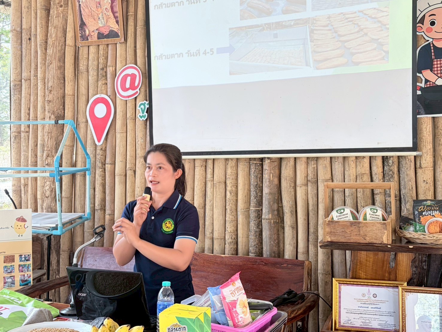 วันที่ 14 มีนาคม 2569 นายพยุงศักดิ์ สิทธิลภ เกษตรจังหวัดแม่ฮ่องสอน มอบหมายให้นายศราวุธ ชนะชัย หัวหน้ากลุ่มยุทธศาสตร์และสารสนเทศ พร้อมด้วยเจ้าหน้าที่กลุ่มยุทธศาสตร์และสารสนเทศ ดำเนินการจัดอบรมโครงการเสริมศักยภาพระบบเกษตรกรรมยั่งยืนจังหวัดแม่ฮ่องสอน กิจกรรมหลักที่ 3 ฝึกอบรมพัฒนาทักษะด้านการแปรรูปและเพิ่มมูลค่าสินค้าเกษตร ให้แก่เกษตรกรและประชาชนในพื้นที่ จำนวน 50 ราย การอบรมดังกล่าวเน้นการถ่ายทอดความรู้ควบคู่การฝึกปฏิบัติ เพื่อพัฒนาทักษะด้านการแปรรูปผลผลิตทางการเกษตรและการเพิ่มมูลค่าสินค้า โดยมีกิจกรรมสำคัญ ได้แก่ การแปรรูปกล้วยตากและการสร้างโรงตากกล้วยพลังงานแสงอาทิตย์ การแปรรูปกระเทียมดอง และการแปรรูปข้าวแต๋นไตสามงา รวมถึงการเลือกใช้บรรจุภัณฑ์ที่เหมาะสม การจัดกิจกรรมในครั้งนี้มีเป้าหมายเพื่อให้เกษตรกรสามารถนำองค์ความรู้ไปประยุกต์ใช้ในการสร้างรายได้เสริม และเสริมสร้างความเข้มแข็งให้กับระบบเกษตรกรรมยั่งยืนในระดับครัวเรือนและชุมชน ณ บ้านสวนแสงศรีจันทร์ หมู่ที่ 1 ตำบลแม่เงา อำเภอขุนยวม จังหวัดแม่ฮ่องสอน